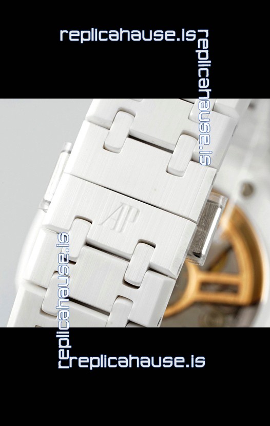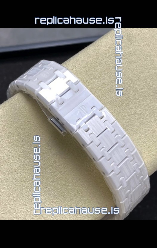 Lightweight White Ceramic Strap with smooth edges with AP Folding Clasp complete with AP Markings and Engravings