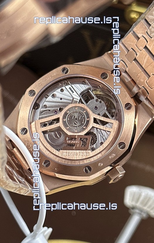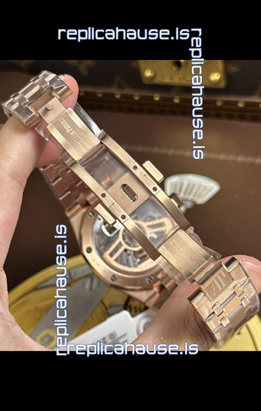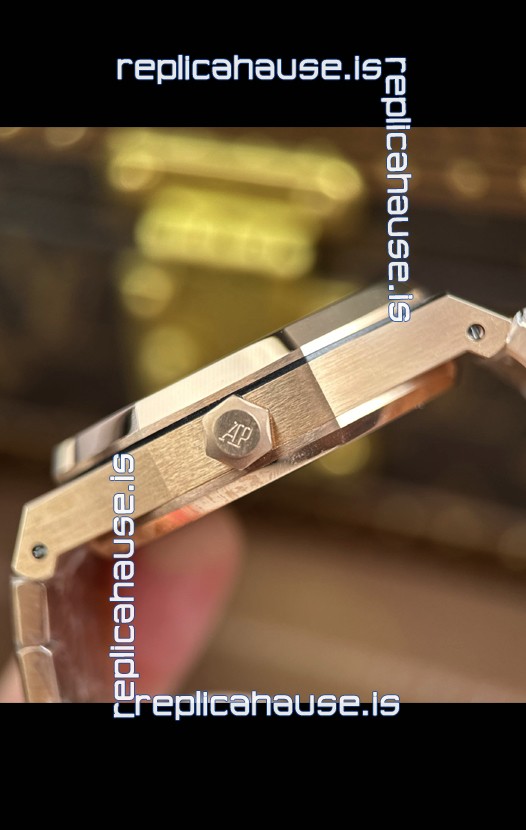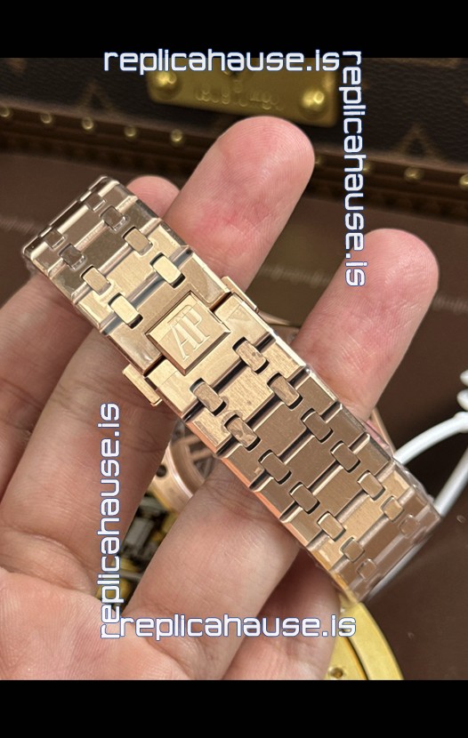 18K Rose Gold Plating on 904L Stainless Steel Case Strap complete with Audemars Piguet Markings and Engravings with AP Signature Clasps