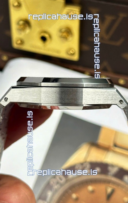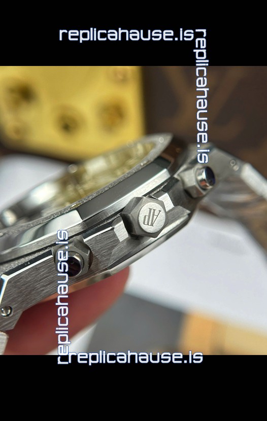 Frosted White Gold Plating on 904L Stainless Steel Strap completed with AP Markings and Engravings as per the originals and AP Folding Clasp