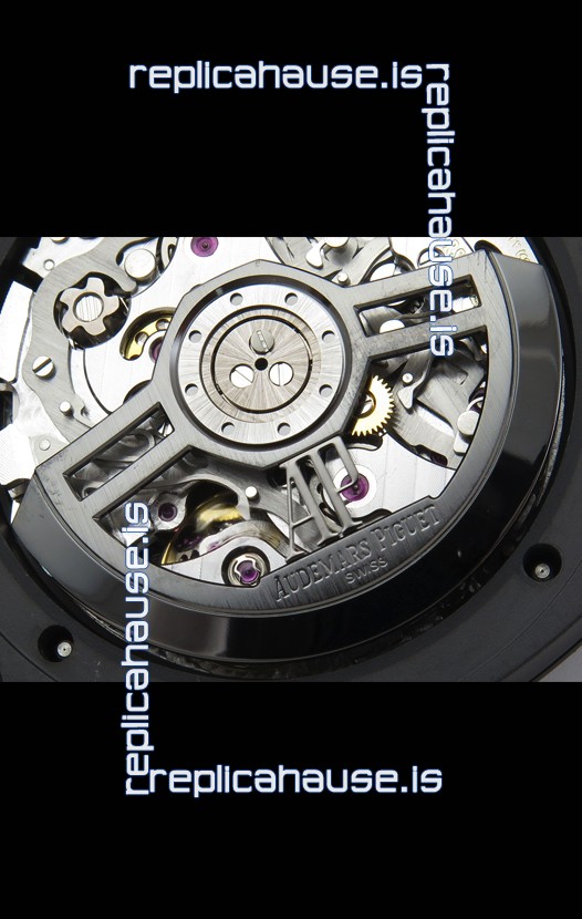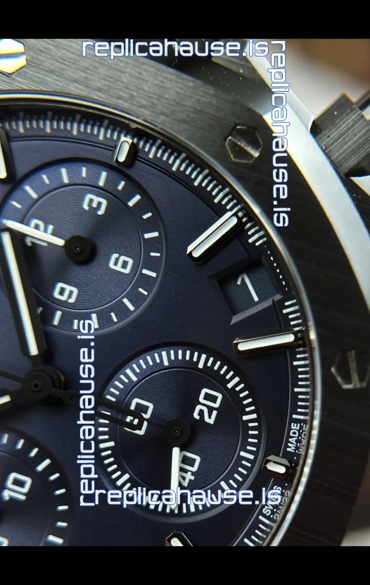 Machinery Layout exactly like Audemars Piguet 3126 Calibre Movement used in Authentic Audemars Piguet Offshore Watches. Built on Genuine Swiss 7753 Movement architecture with Functional stopwatch feature like the authentic with Seconds hand running at the 12 o clock Sub Dial