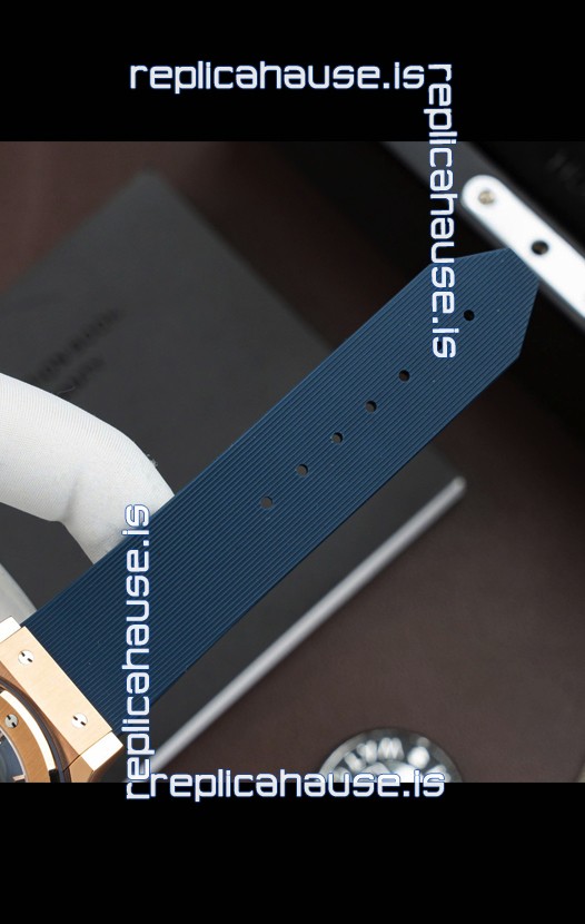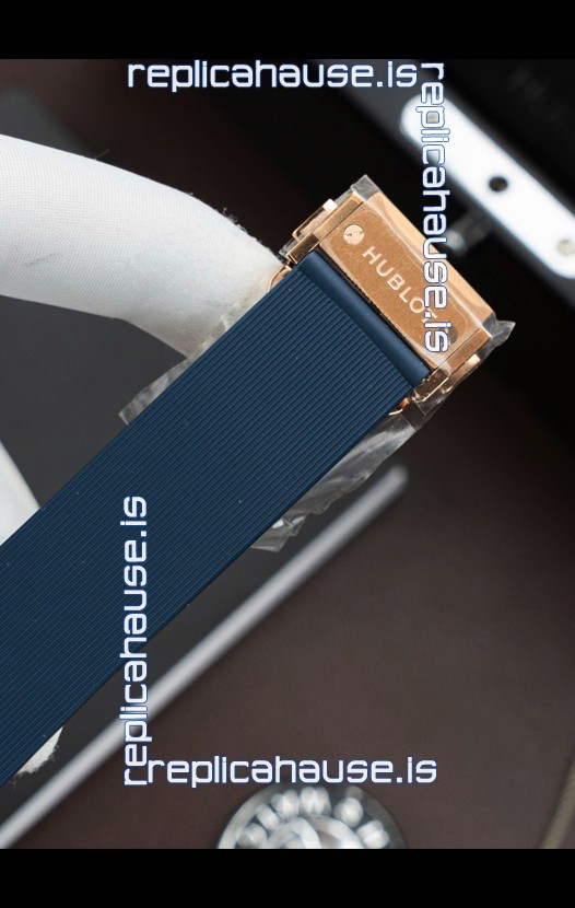 Rubber Strap with Rose Gold Folding Clasp complete with Hublot Markings and Engravings.