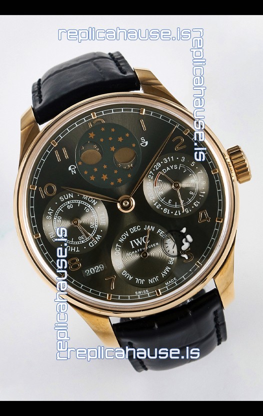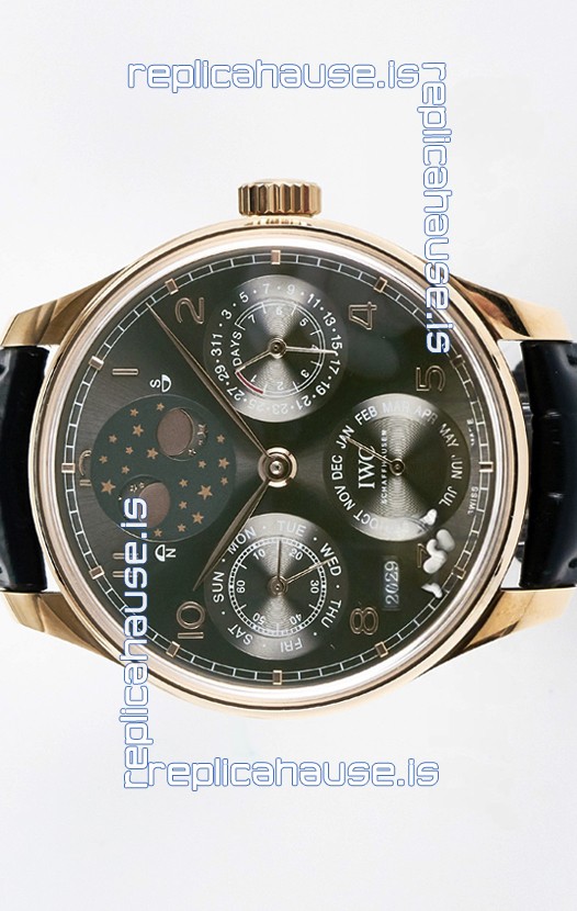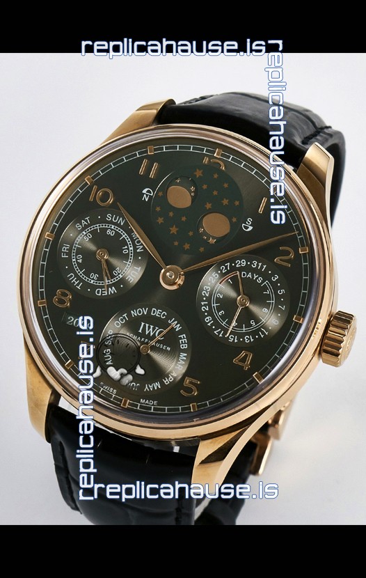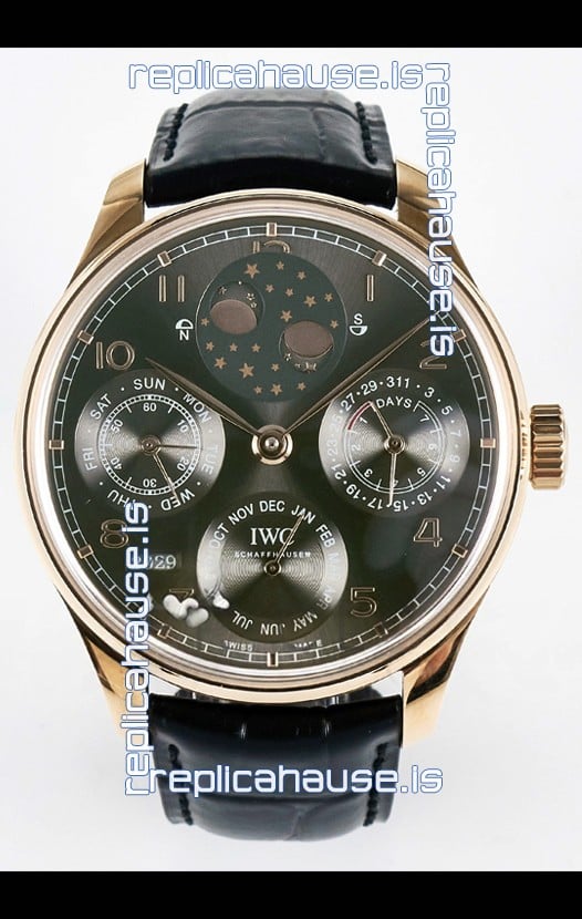 IWC Portuguese Perpetual Calendar Rose Gold Swiss Replica Watch REF. IW503302