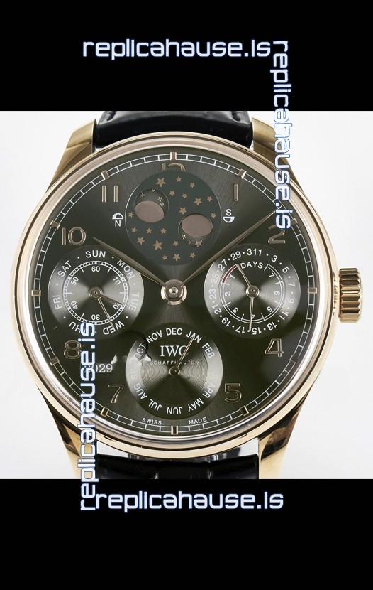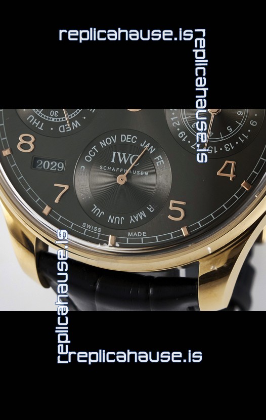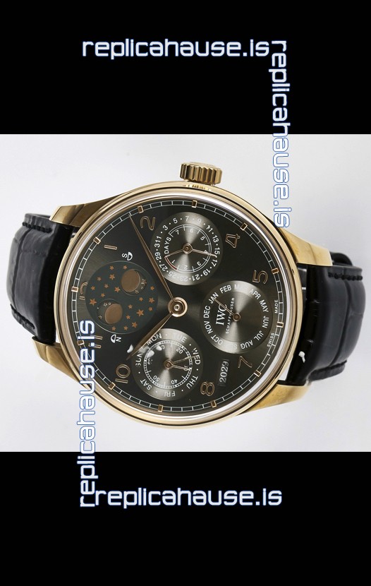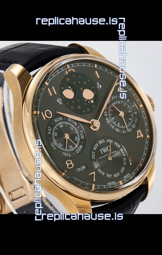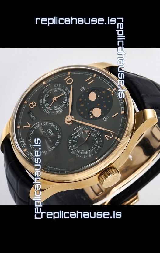 You're reviewing: IWC Super Clone Portuguese Perpetual Calendar Rose Gold Grey Dial Replica Watch