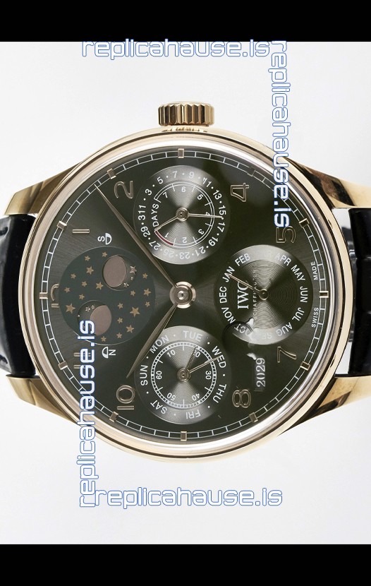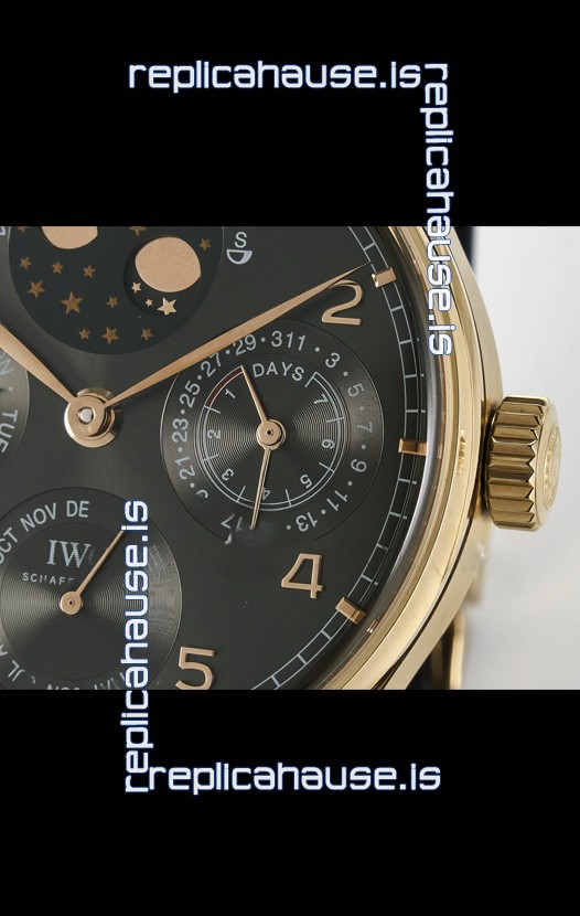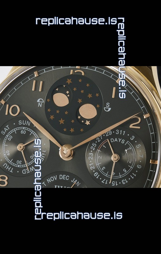 IWC Super Clone Portuguese Perpetual Calendar Rose Gold Grey Dial Replica Watch