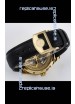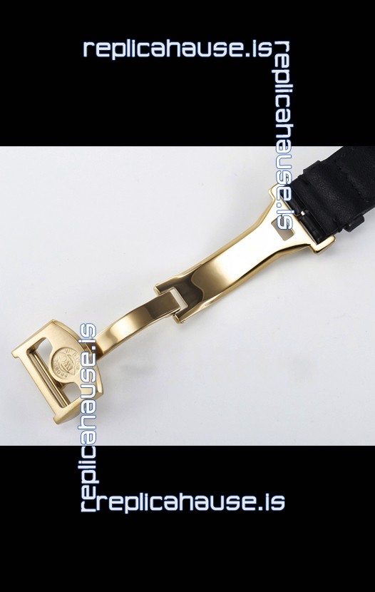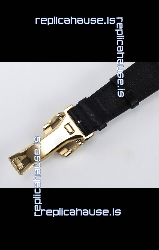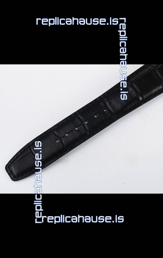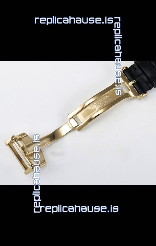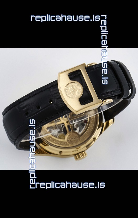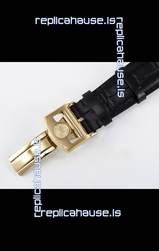 Genuine Leather Strap with IWC Markings and Engravings with Tang 18K Rose Gold Plated Steel Buckle