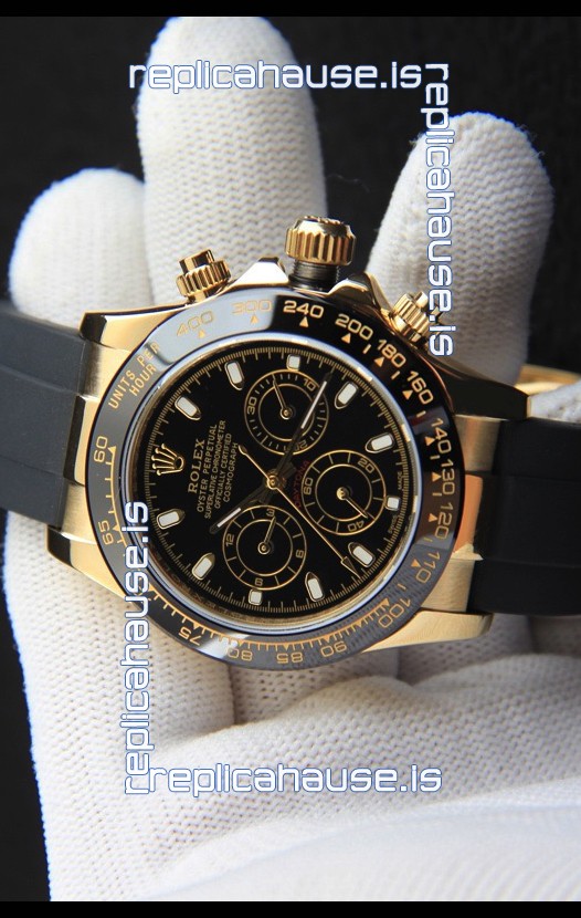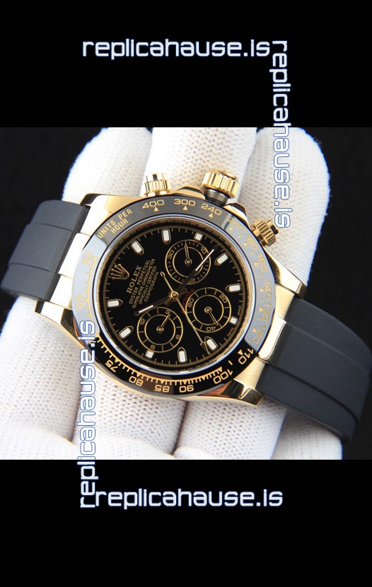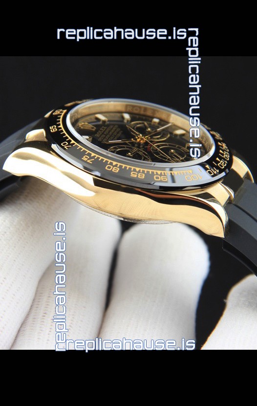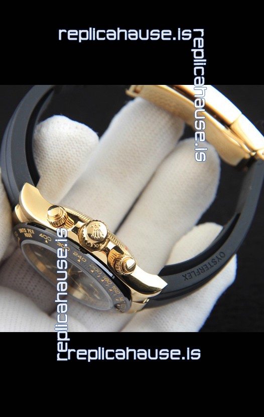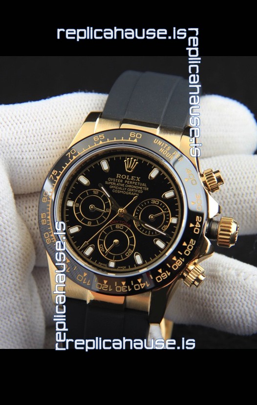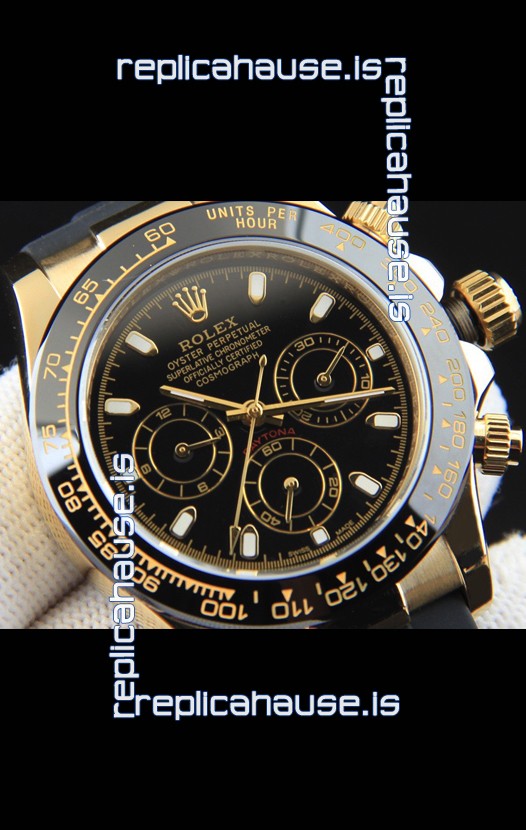 Rolex Daytona Japanese Movement Gold Casing Replica Watch in Black Dial