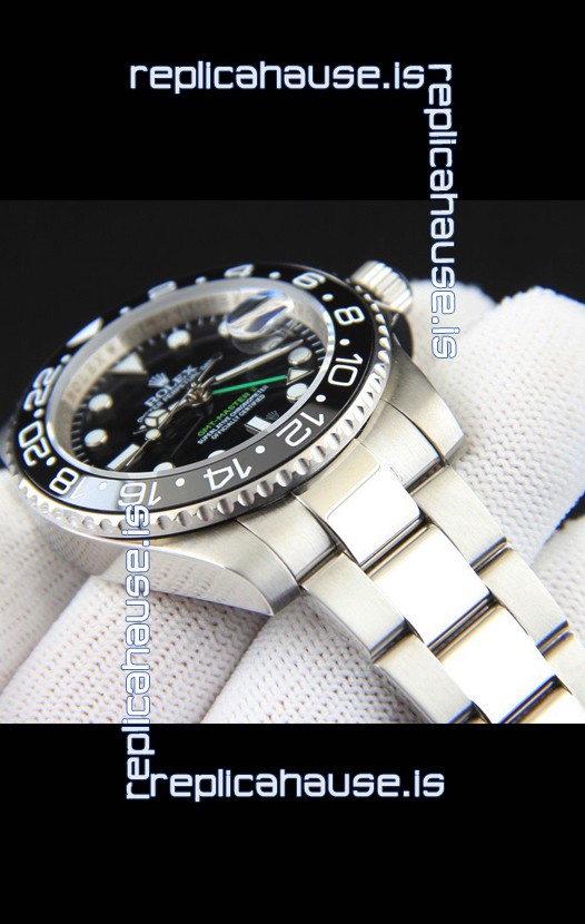 Rolex GMT Masters II Japanese Movement Replica Watch Steel Case Black Dial