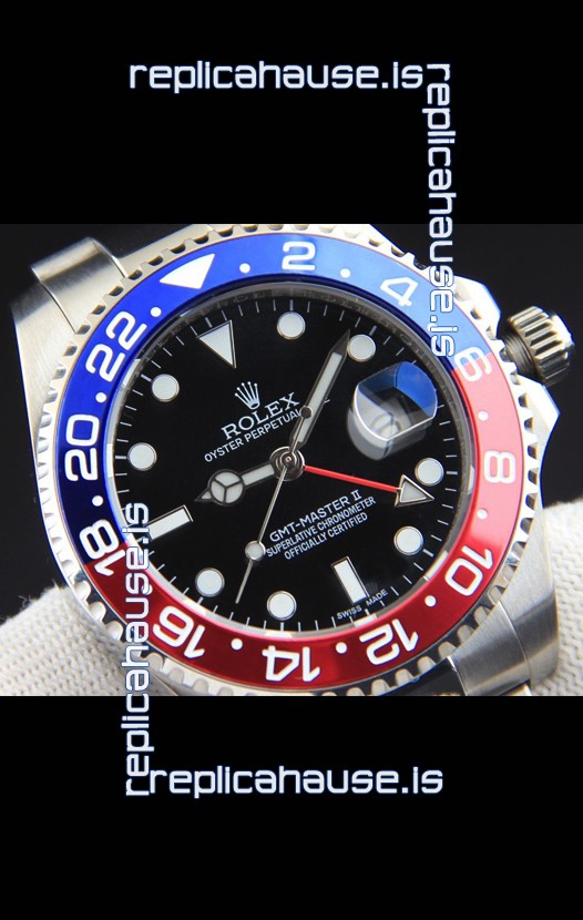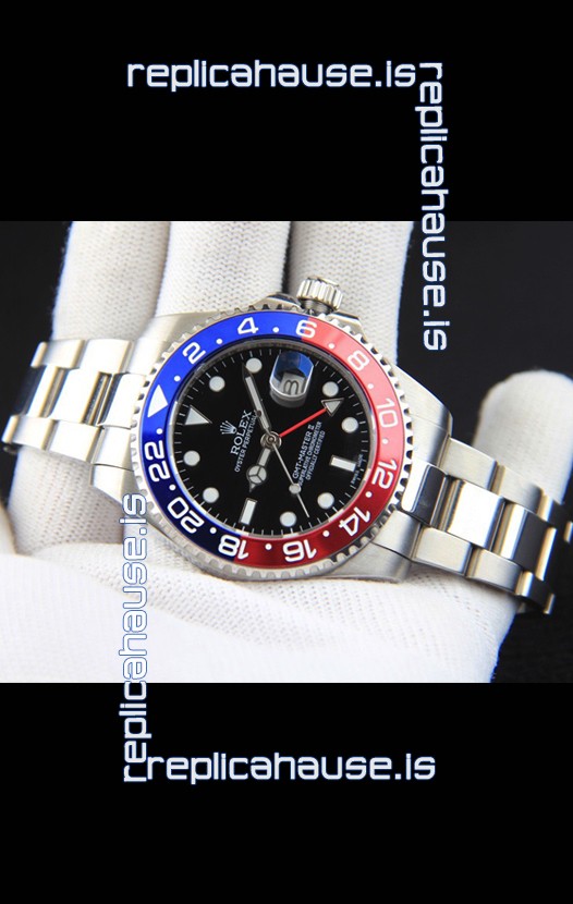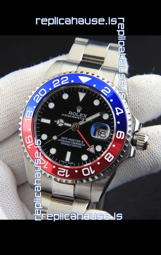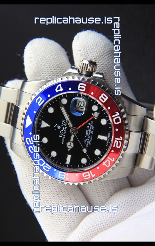 Rolex GMT Masters II Japanese Movement Replica Watch Steel Case Black Dial