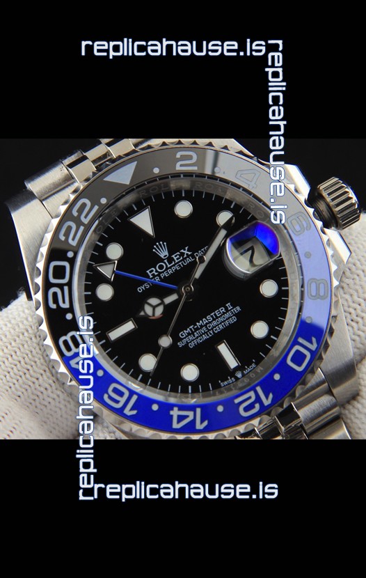 You're reviewing: Rolex GMT Masters II Japanese Movement Replica Watch Steel Case Black Dial