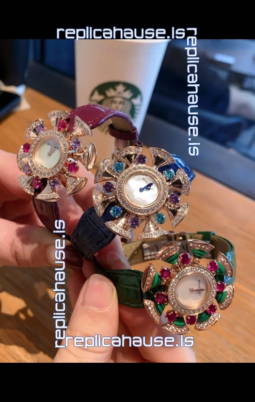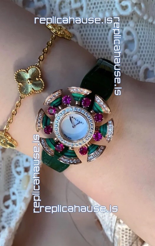 Bvlgari Divas's Dream Edition Watch in Rose Gold Casing - Diamonds Paved Bezel Swiss Replica