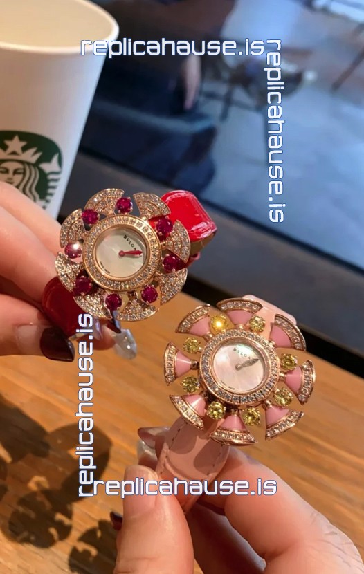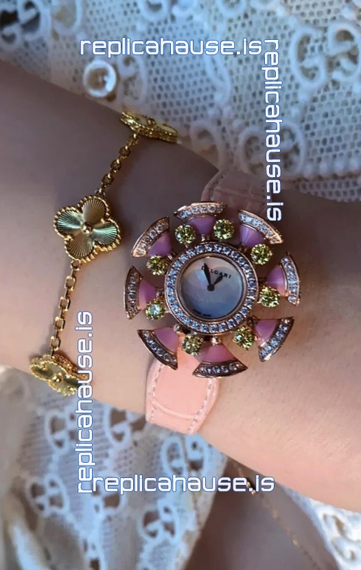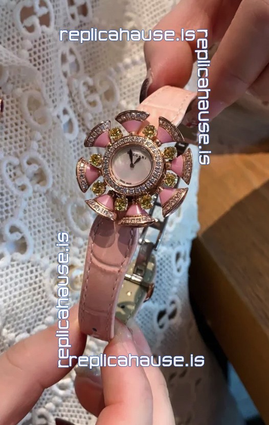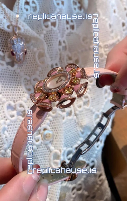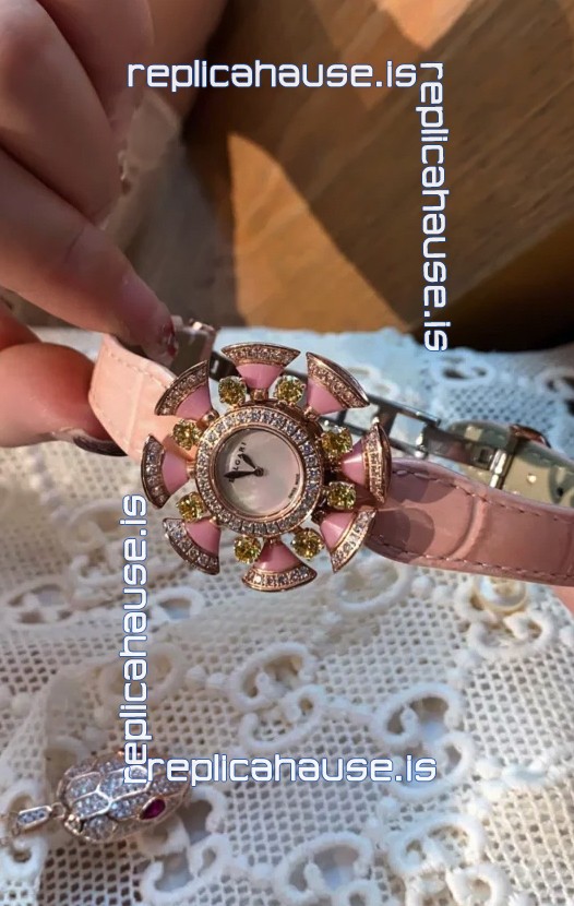 Bvlgari Divas's Dream Edition Watch in Rose Gold Casing - Diamonds Paved Bezel Swiss Replica