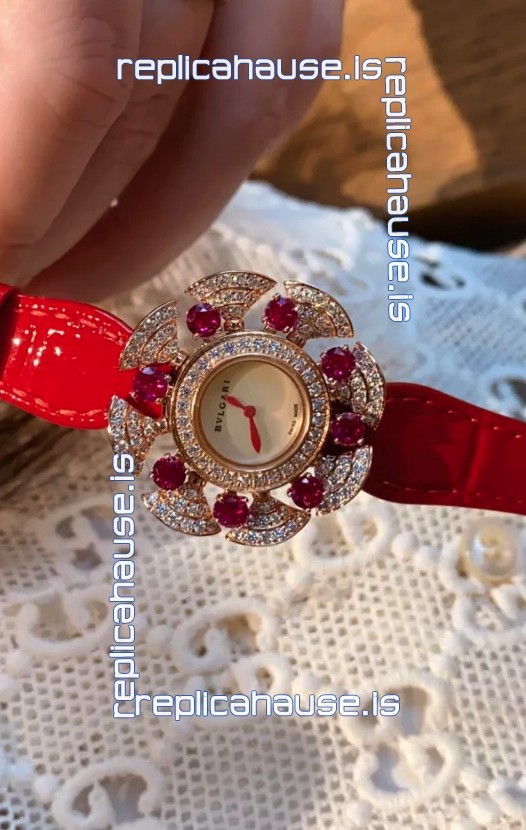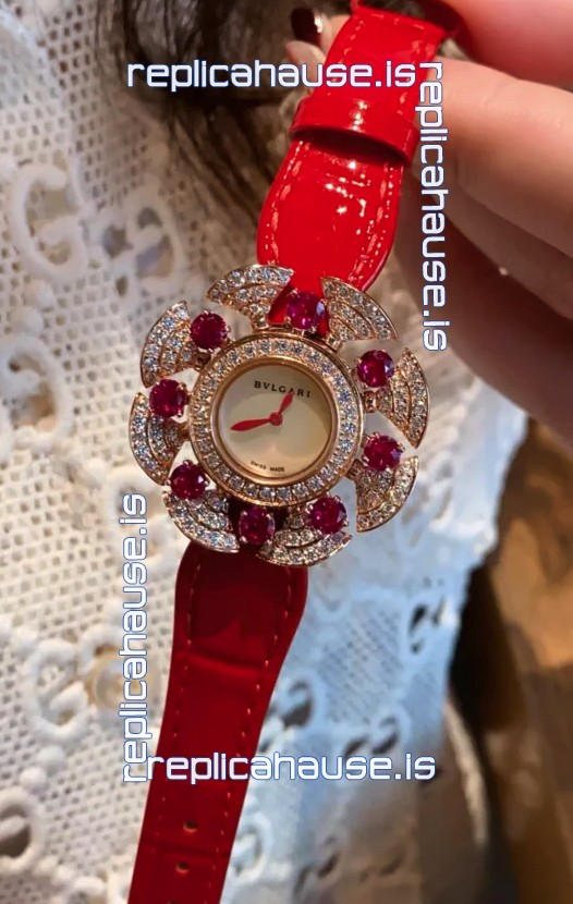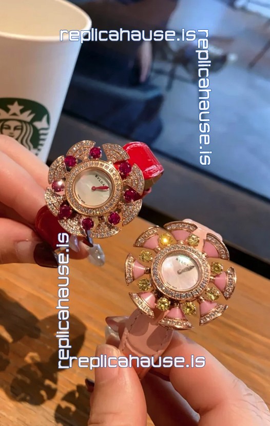 Bvlgari Divas's Dream Edition Watch in Rose Gold Casing - Diamonds Paved Bezel Swiss Replica