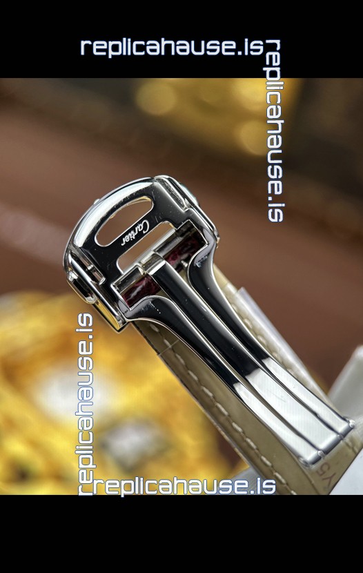 Genuine Leather Strap with Cartier Markings/Engravings and Double Folding Clasp