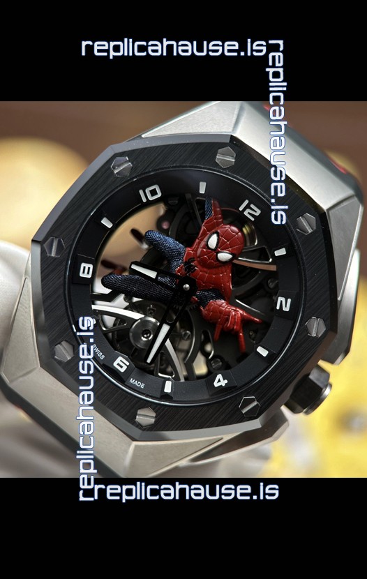 Openworked Dial with Spider-Man Figure. Ceramic Bezel