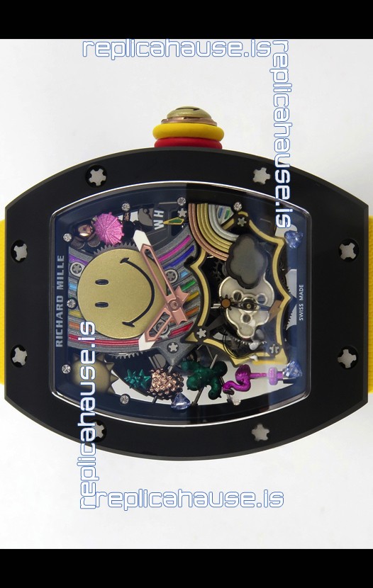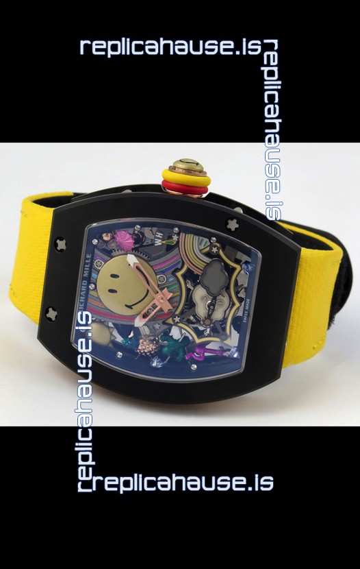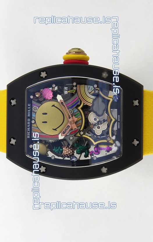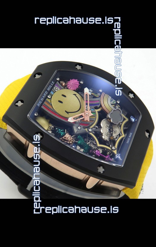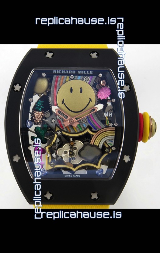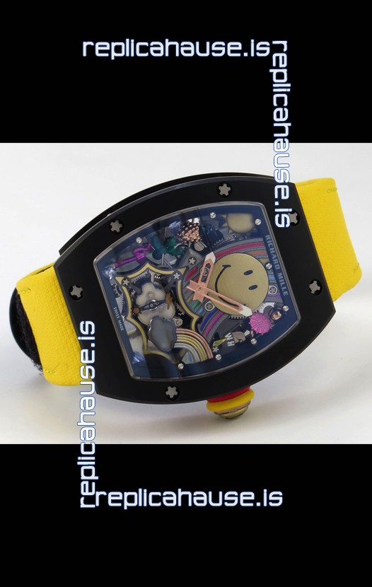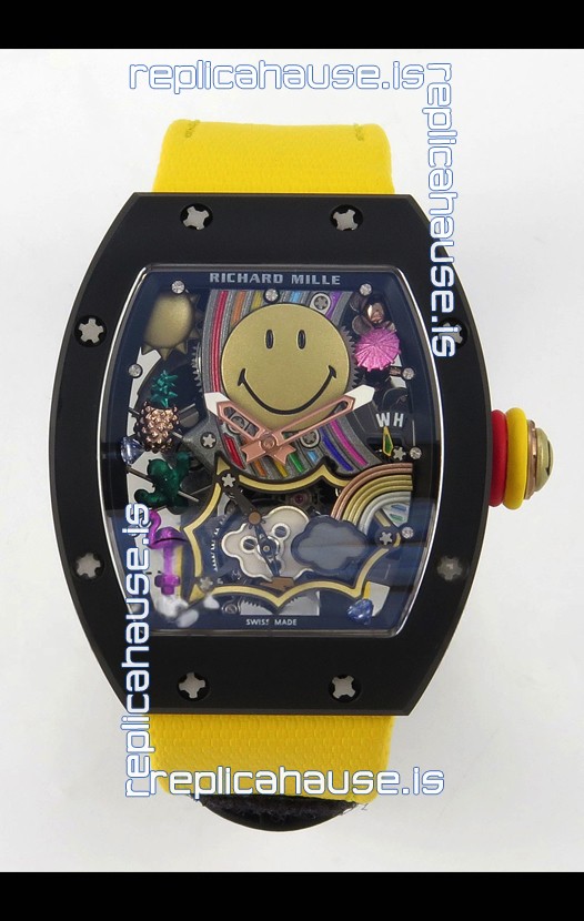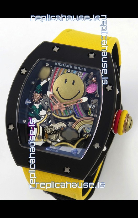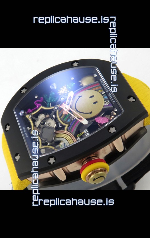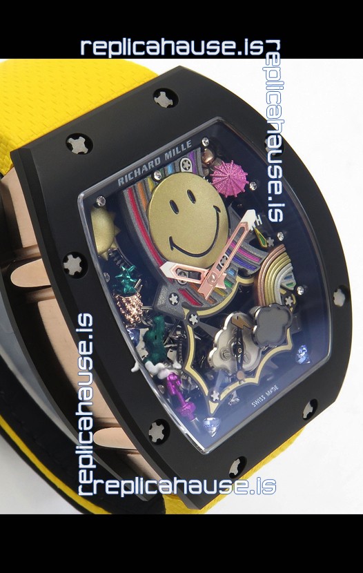 Richard Mille Super Clone RM088 Smiley Tourbillon Black Ceramic Velcro Strap Watch