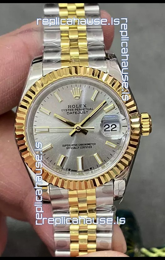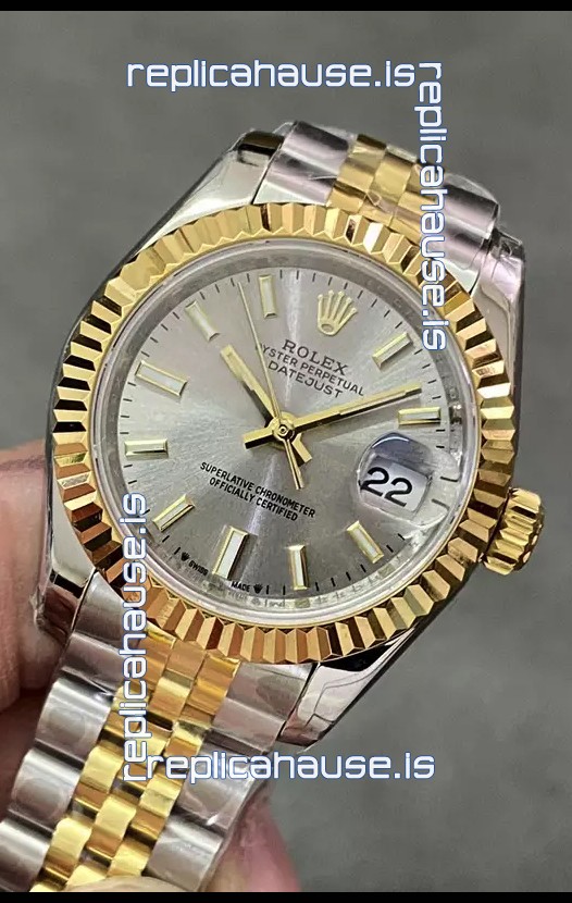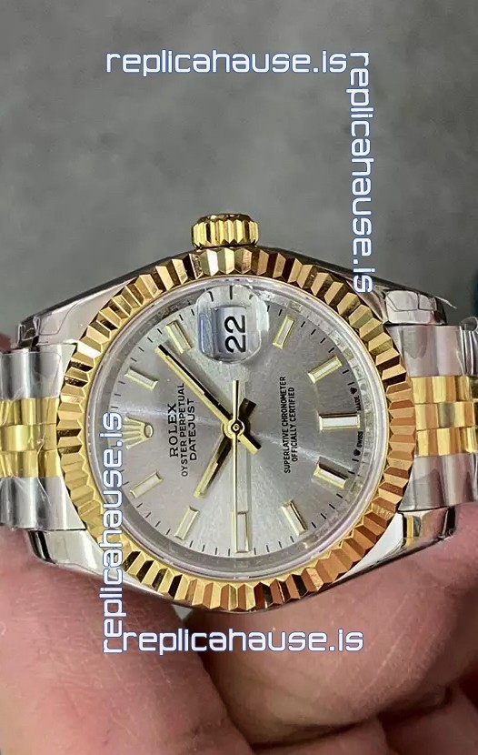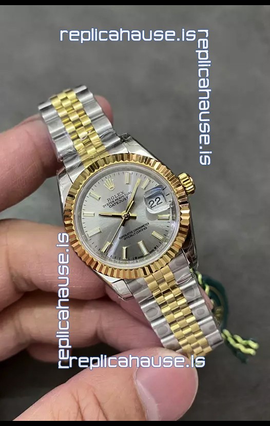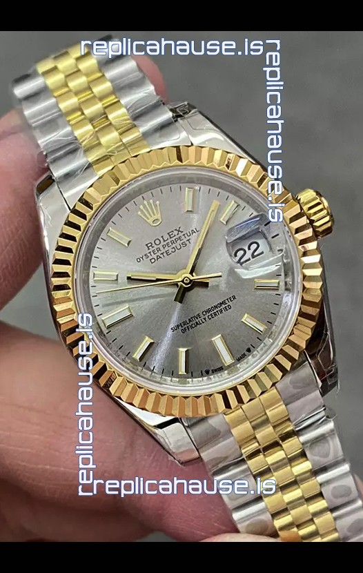 Rolex Datejust Super Clone Grey Dial 2 Tone Yellow Rose Gold Watch 28MM