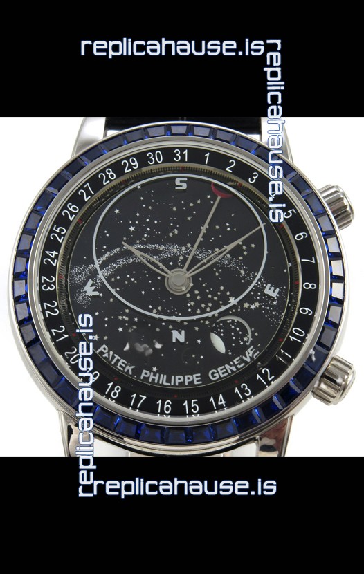 Patek Philippe Grand Complications 6102 Black Dial Blue Diamonds Swiss Replica Watch
