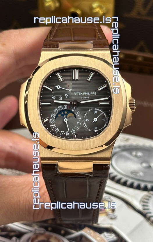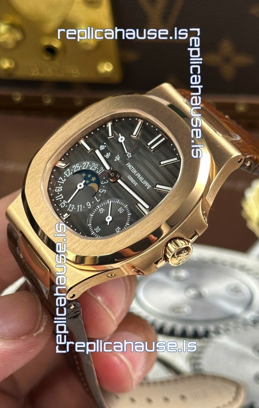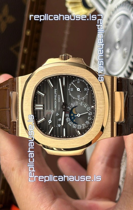 You're reviewing: Patek Philippe Nautilus 5712/R 1:1 Quality Swiss Replica Watch in Grey Dial Leather Strap