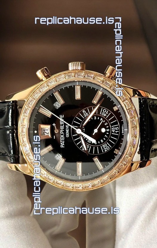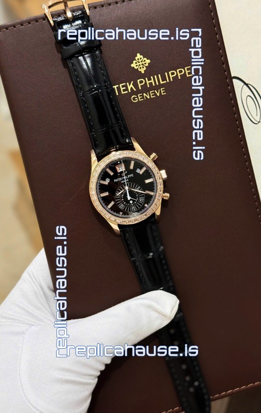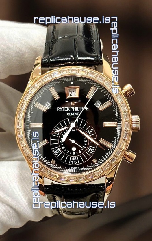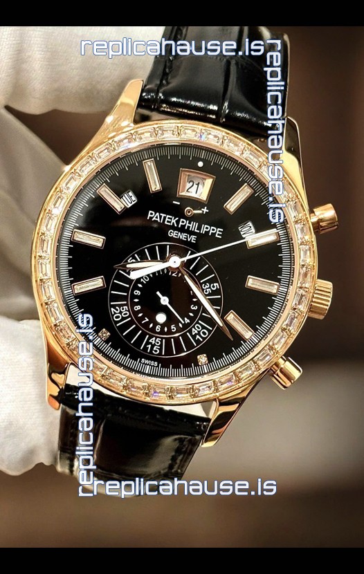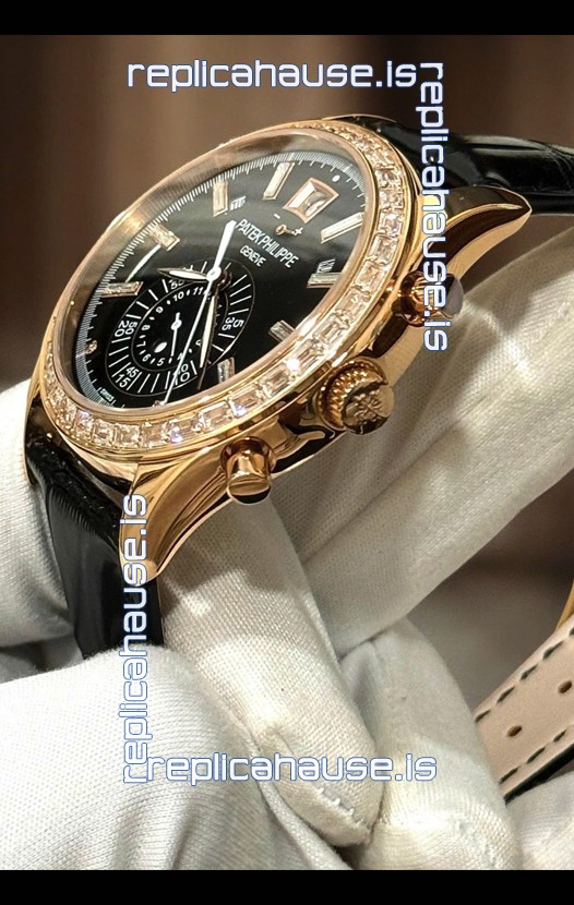 Patek Philippe Super Clone Complications 5961 Rose Gold Watch with Mossanites