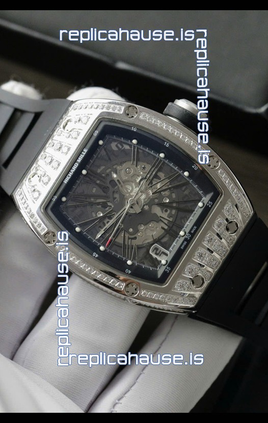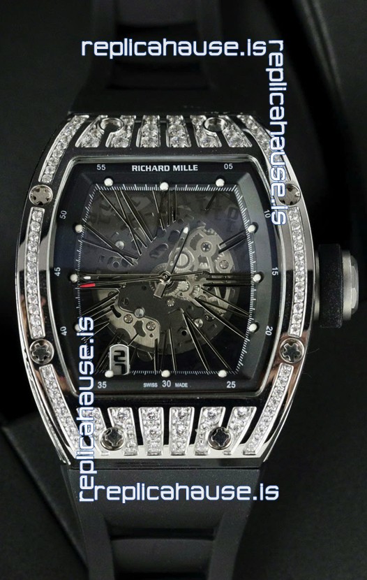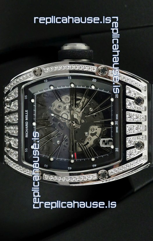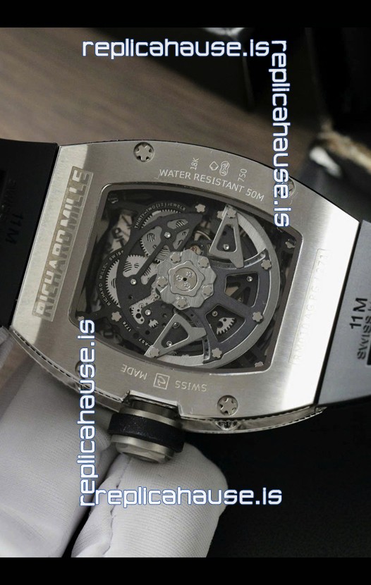 Richard Mille RM010 Stainless Steel Replica Watch in Black Strap