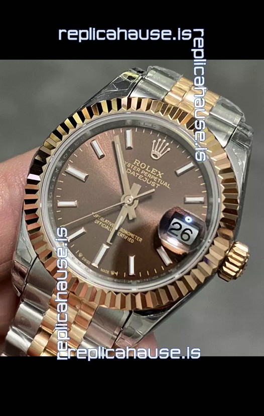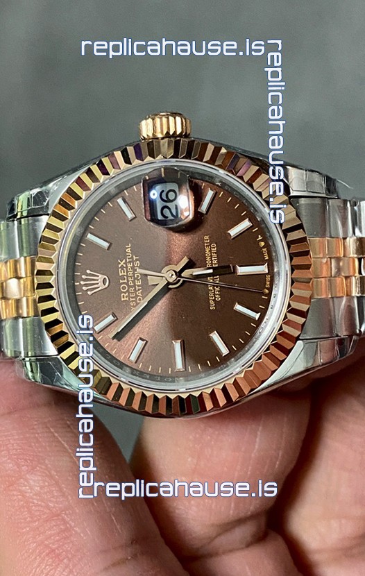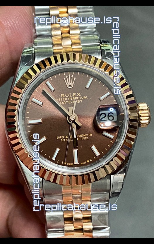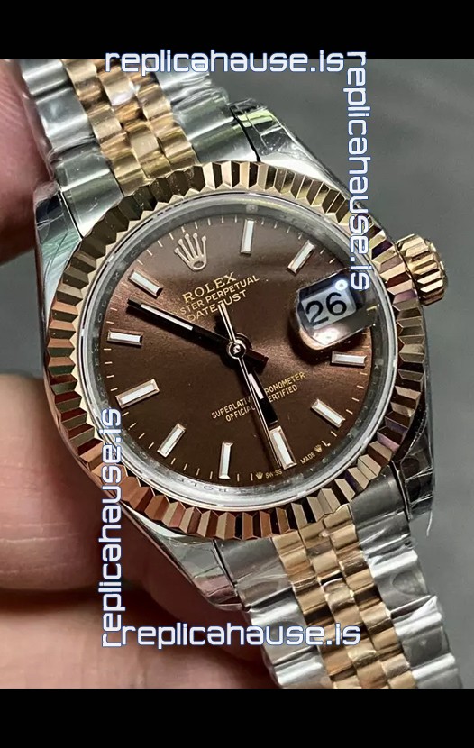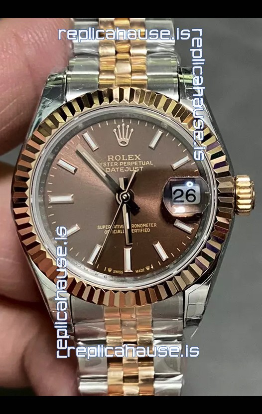 Rolex Datejust Super Clone Brown Dial 2 Tone Rose Gold Watch 28MM