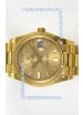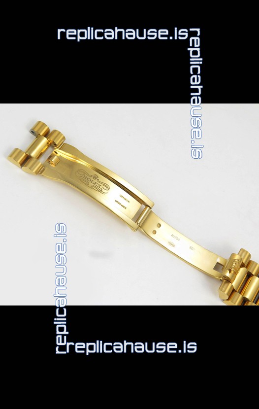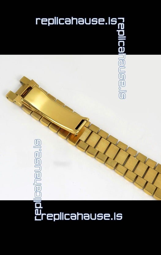 18K Yellow Gold Plating on 904L Stainless Steel New Design President Strap with Folding Clasps complete with Rolex Markings and Engravings