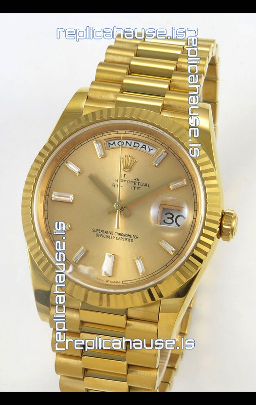 Rolex Day Date Super Clone Gold Dial 40MM 220 Grams Swiss Replica watch