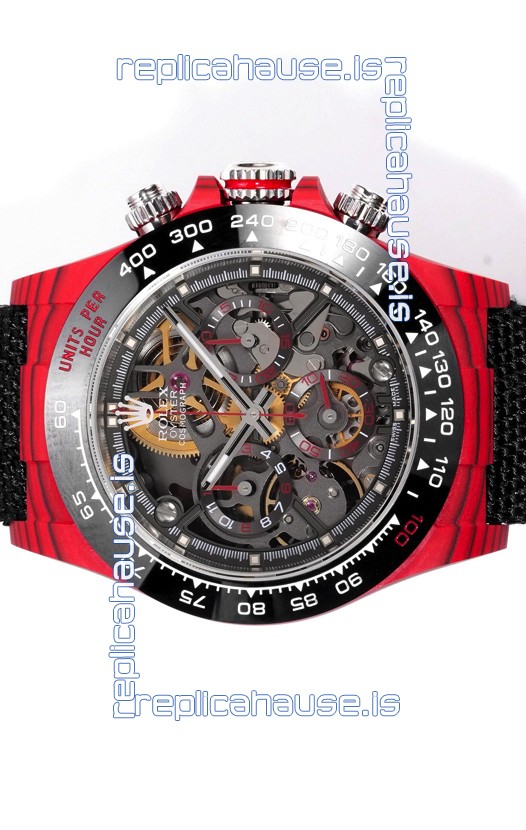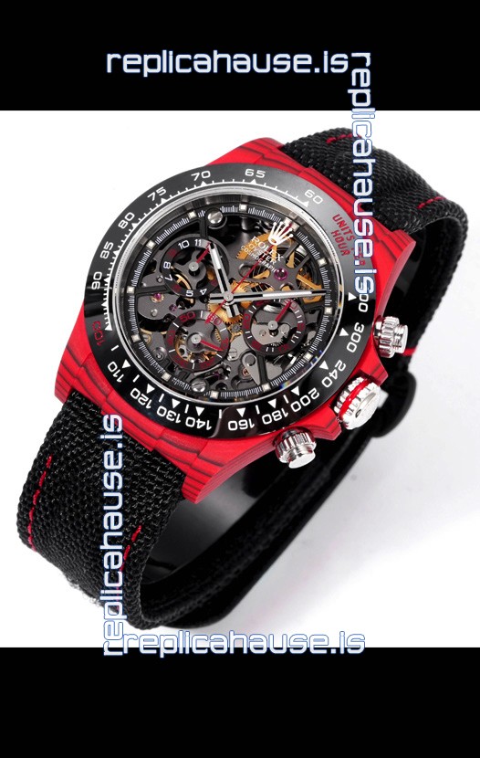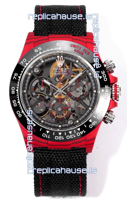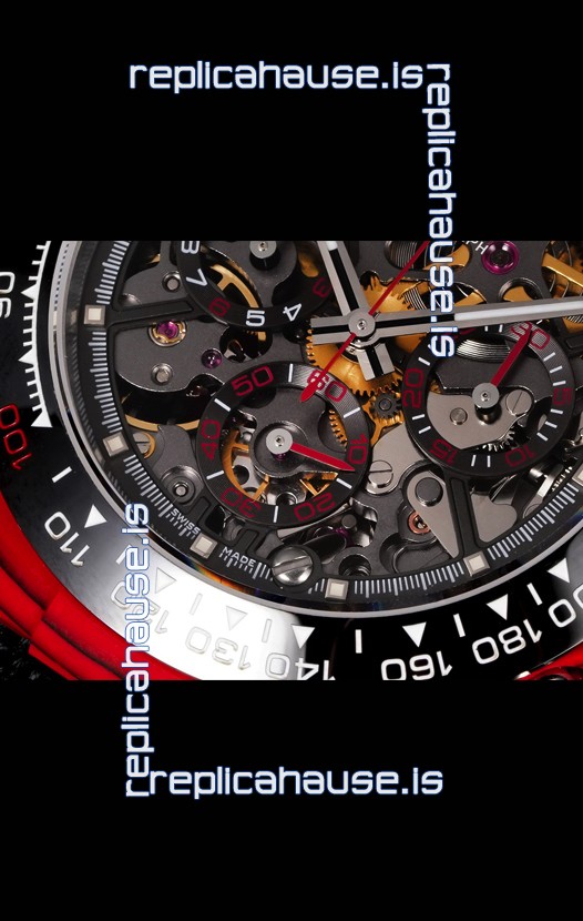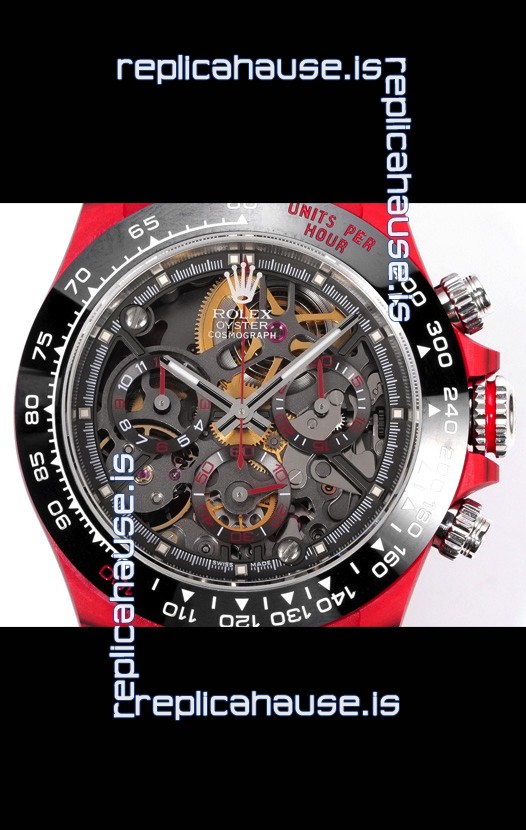 Rolex Daytona Blaken Red Carbon 1:1 Swiss Mirror Replica Skeleton Dial Cal.4130 Movement