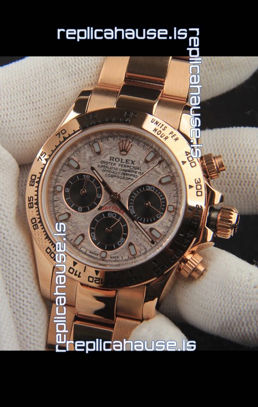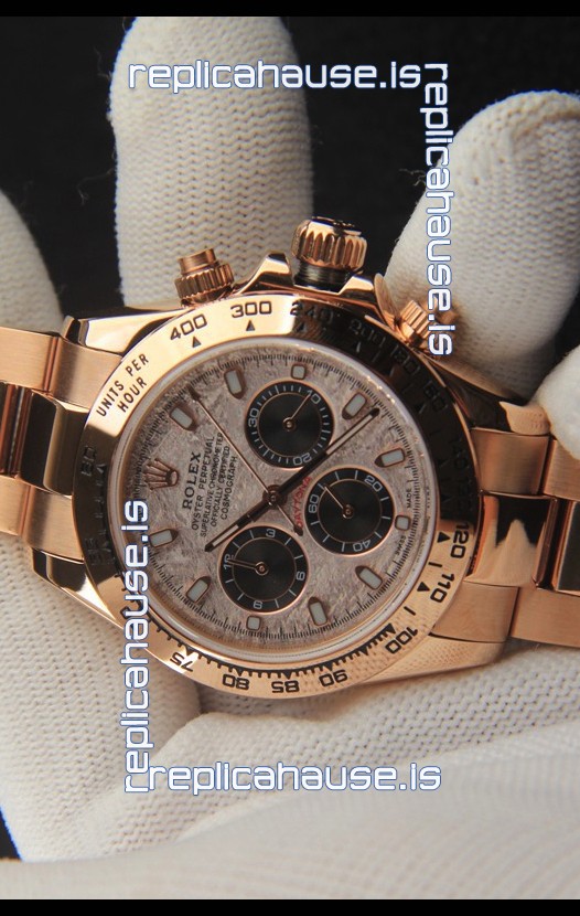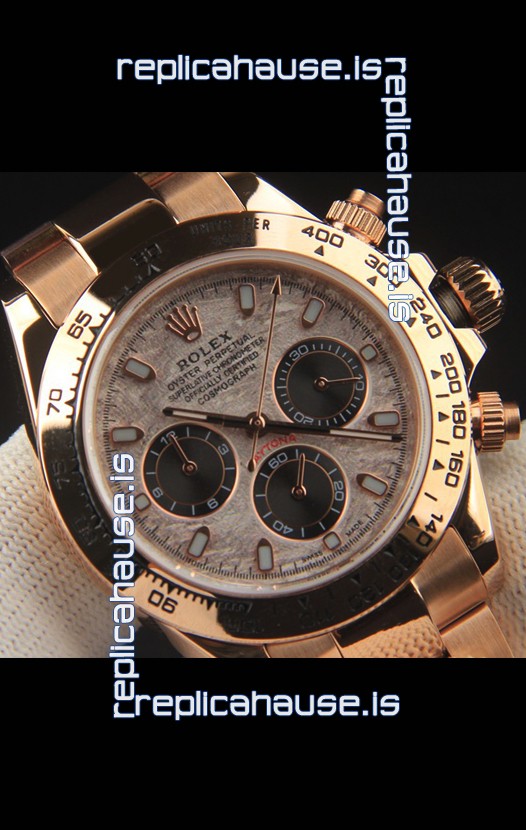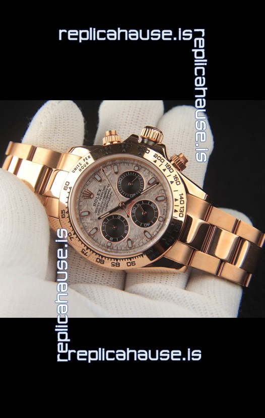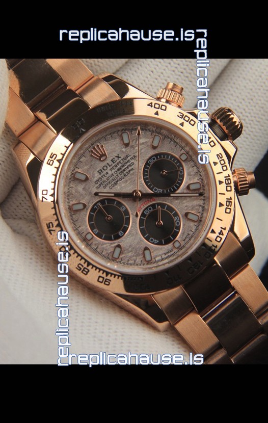 Rolex Daytona Japanese Movement Gold Casing Replica Watch in Meteorite Pattern Dial