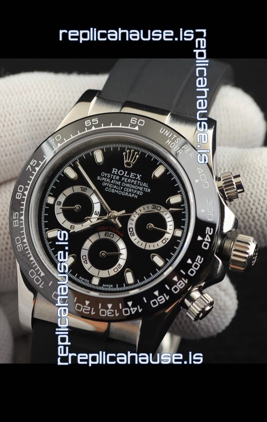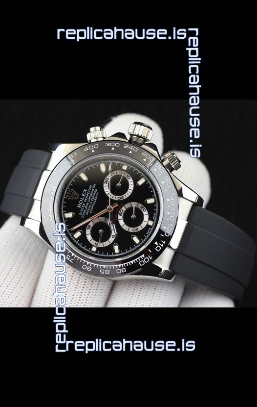 Rolex Daytona Japanese Movement Steel Casing Replica Watch in Black Dial