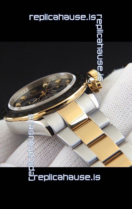 Rolex Daytona Japanese Movement Two Tone Gold Casing Watch in Black Dial