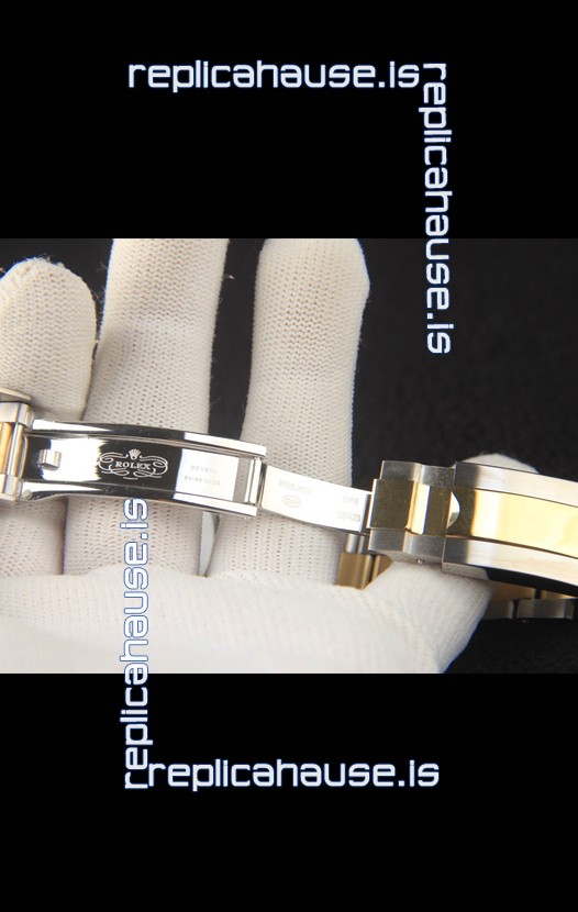 Two Tone 18K Gold Plating on 904L Solid Stainless Steel Case with Rolex Markings and Engravings