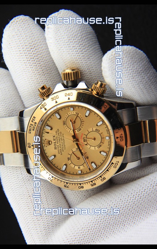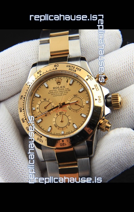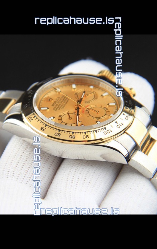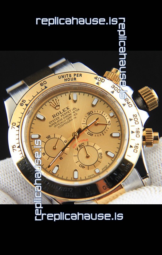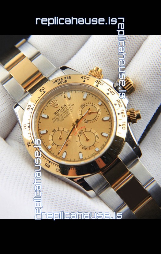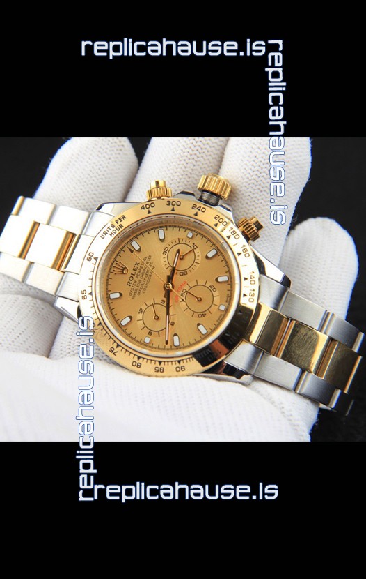 Rolex Daytona Japanese Movement Two Tone Gold Casing Watch in Gold Dial