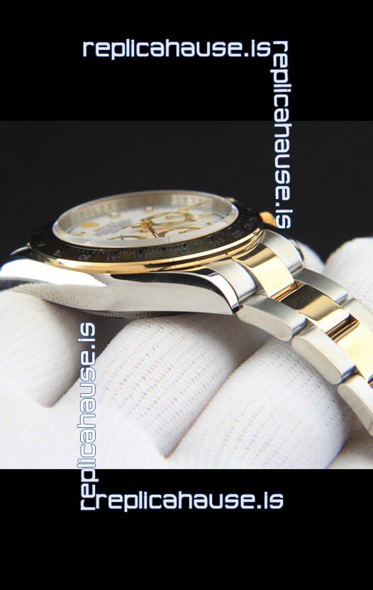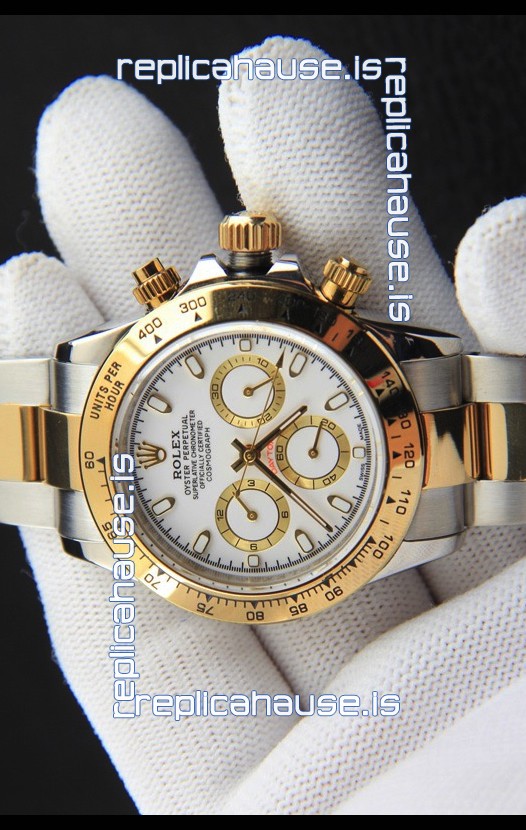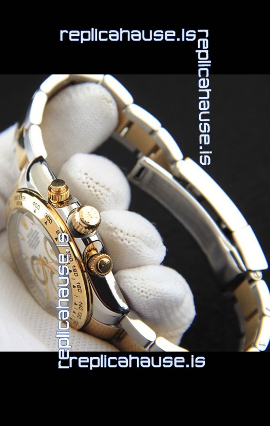 Rolex Daytona Japanese Movement Two Tone Gold Casing Watch in White Dial