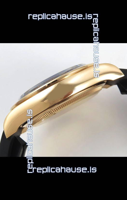Rose Gold Plating on 904 Solid Stainless Case with Rolex Markings and Engravings like the Authentic.
