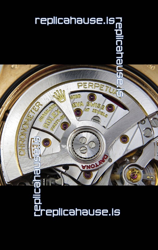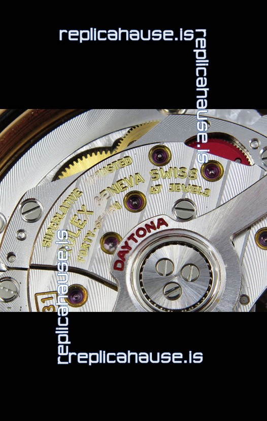 Genuine Cal.4131 Movement built from Scratch with no modifications, Platinum Plating on Rotors and Plates as per the original. The Same movement you find in Rolex Daytona Watches