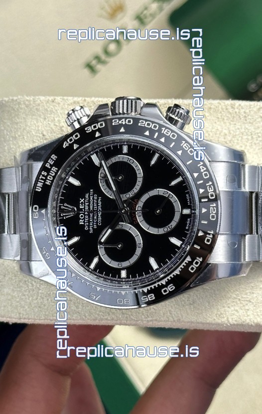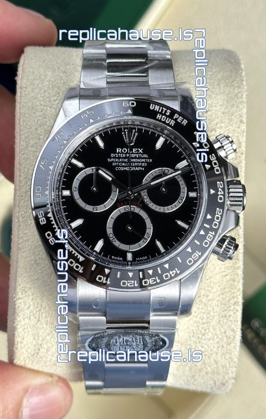 The Best Rolex Daytona Model Replicated up to Date. The First Rolex model to adopt a 904L Steel on Casing and Strap which is the same steel used by Rolex. Compared with an Original Side by Side and there were NO Differences Whatsoever. Complete list of details have been stated below and you will see that tremendous amount of detaiing and work has been put into this edition.