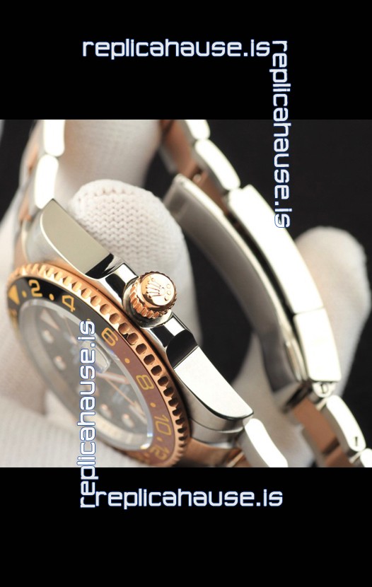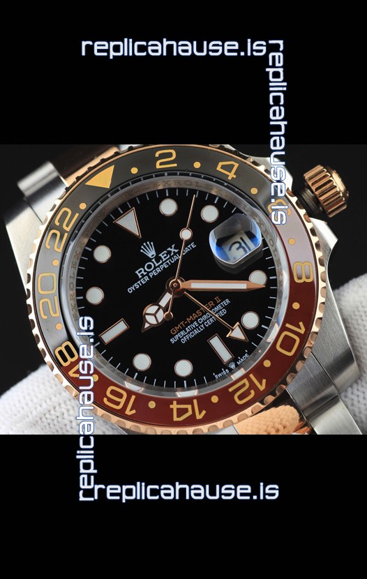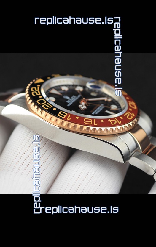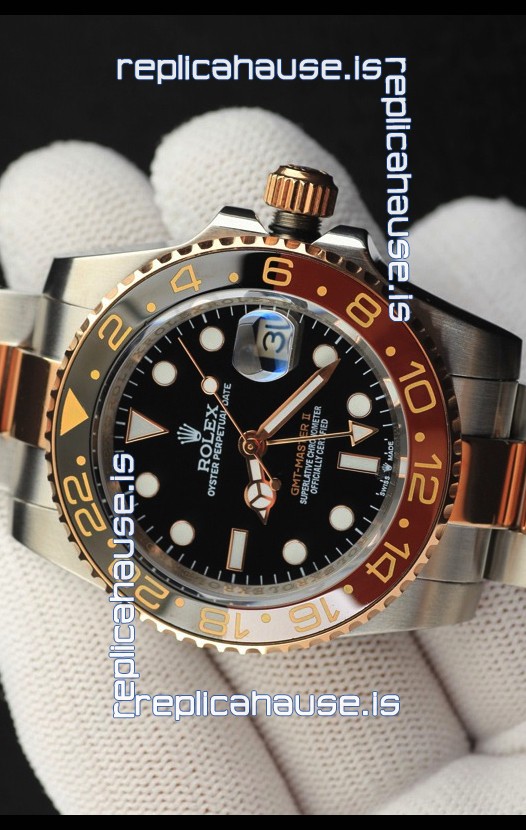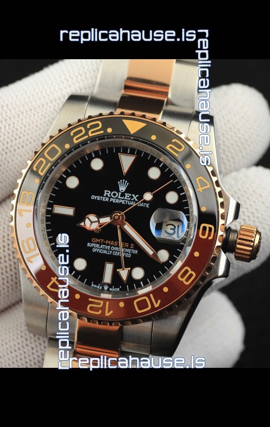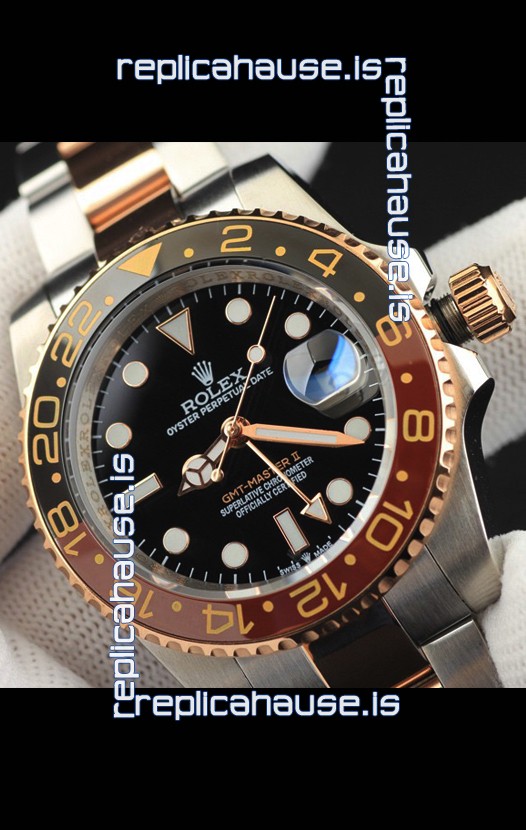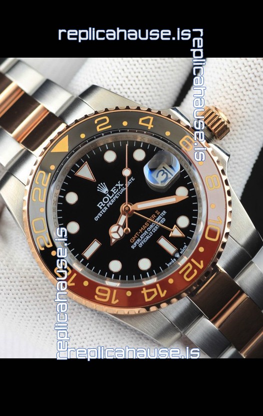 You're reviewing: Rolex GMT Masters II 2 Tone Rose Gold Plating Japanese Replica Watch Black Dial