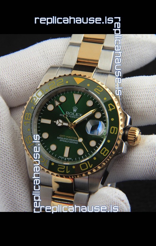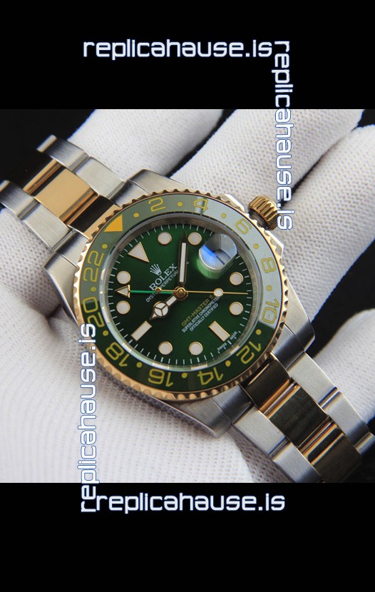 You're reviewing: Rolex GMT Masters II 2 Tone Rose Gold Plating Japanese Replica Watch Green Dial