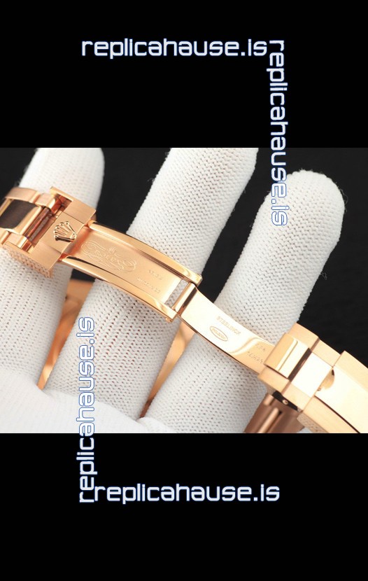 18K Rose Gold Plating on 904L Stainless Steel Strap with Rolex Clasps complete with Rolex Markings/Engravings