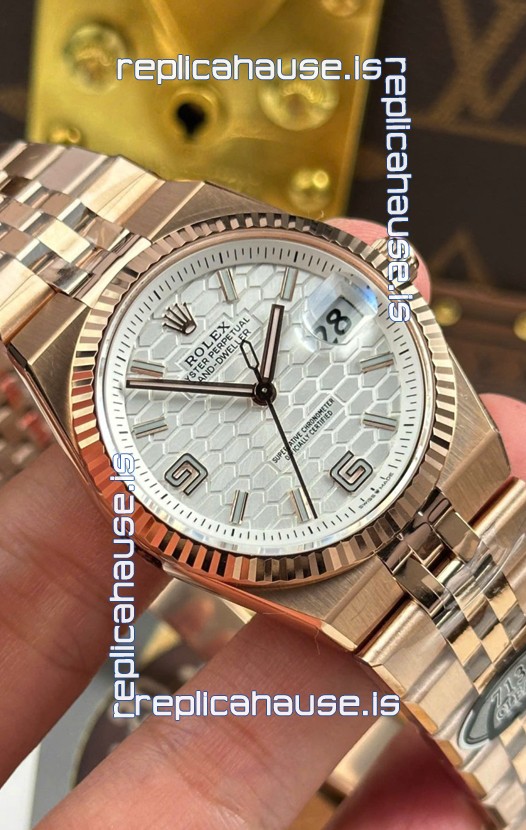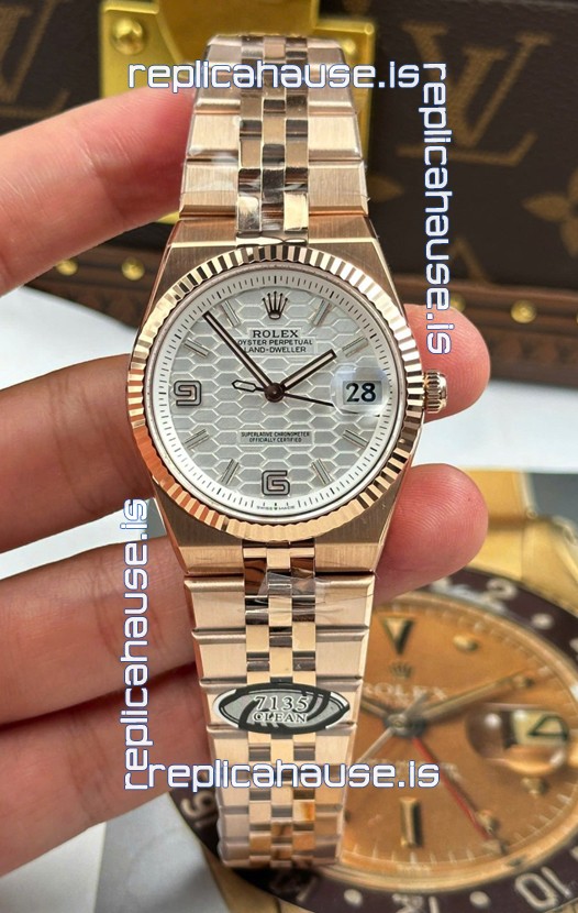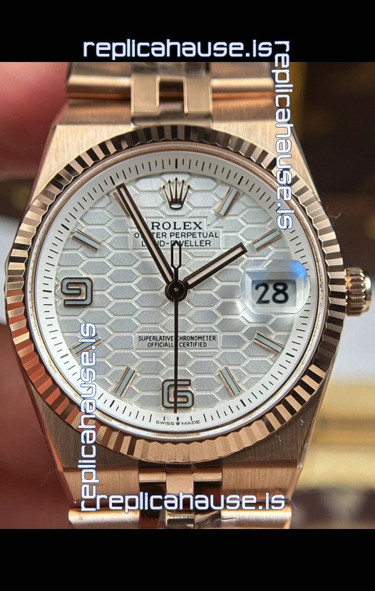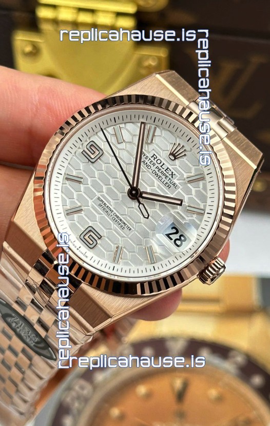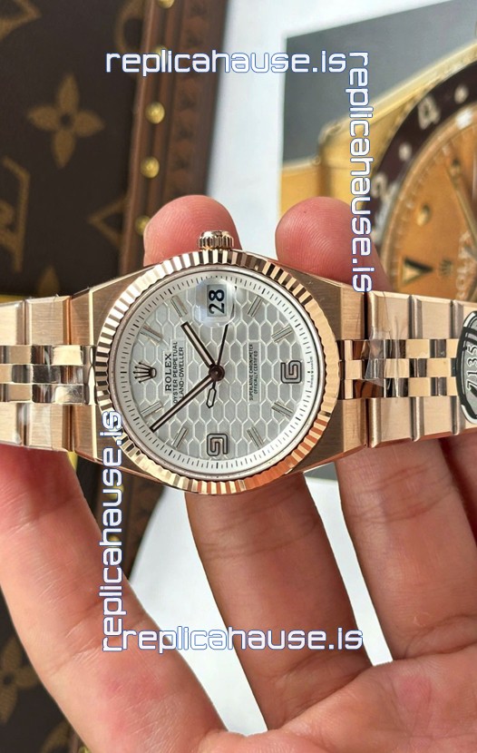 Rolex Land-Dweller 127235 Steel Honeycomb Rose Gold 36MM Swiss Replica Watch