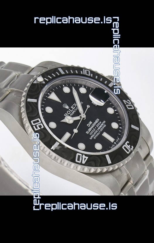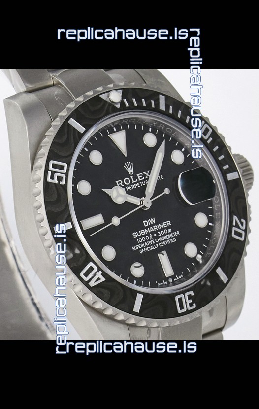 Rolex Submariner DiW Sandblasted Steel Casing Carbon Fiber Bezel Watch Black Dial