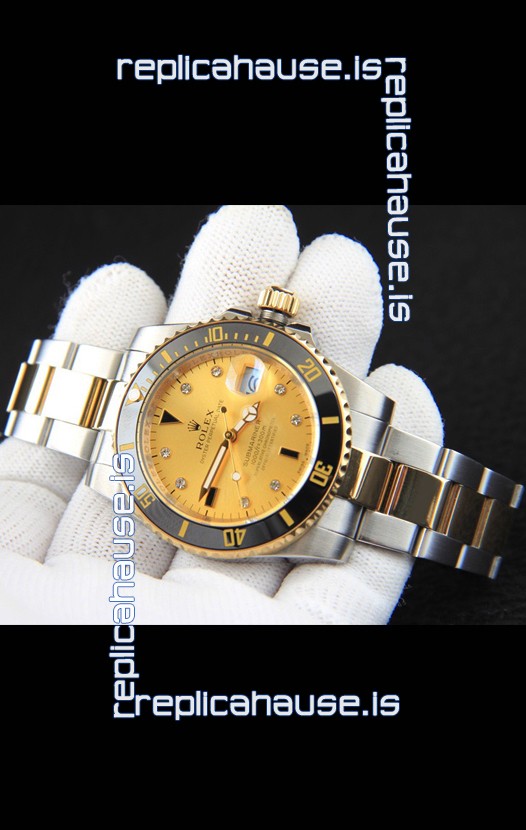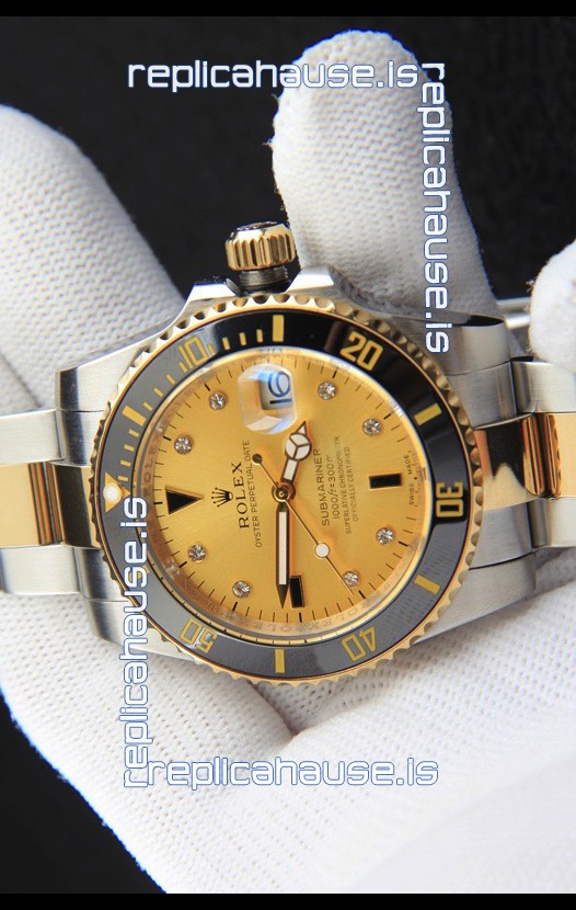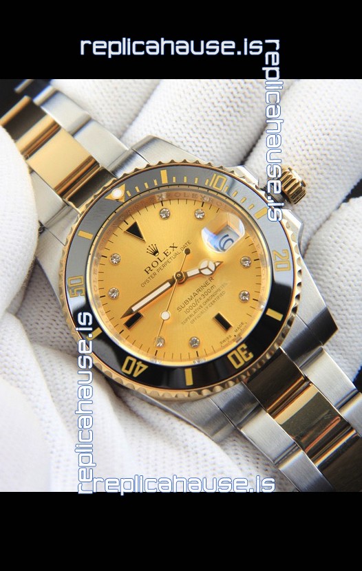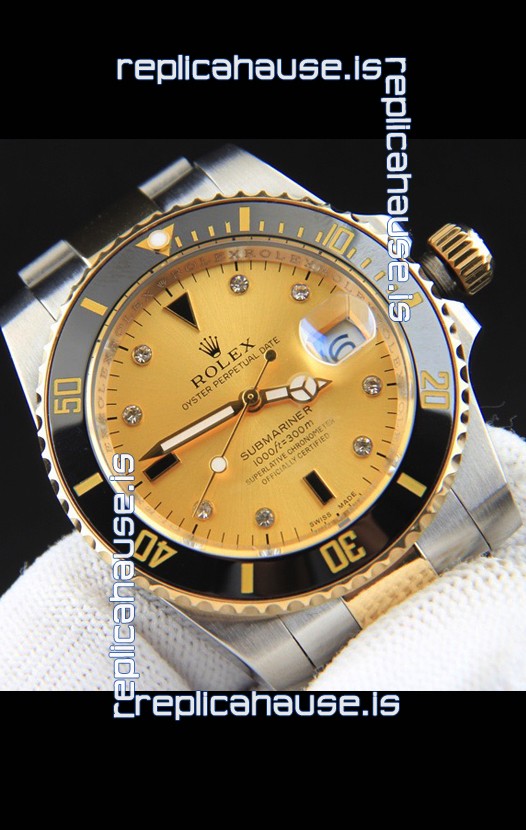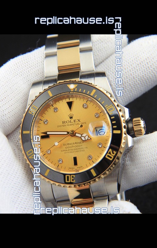 Rolex Submariner Japanese Replica Watch in 2 Tone Yellow Gold Casing Gold Dial