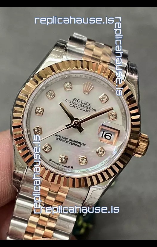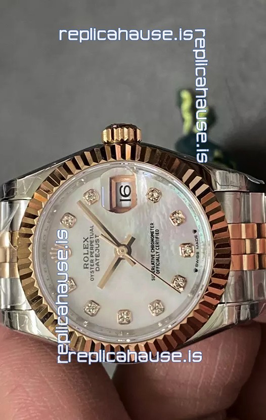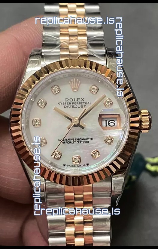 Rolex Datejust Super Clone Mother of Pearl Dial Rose Gold Steel Watch 28MM