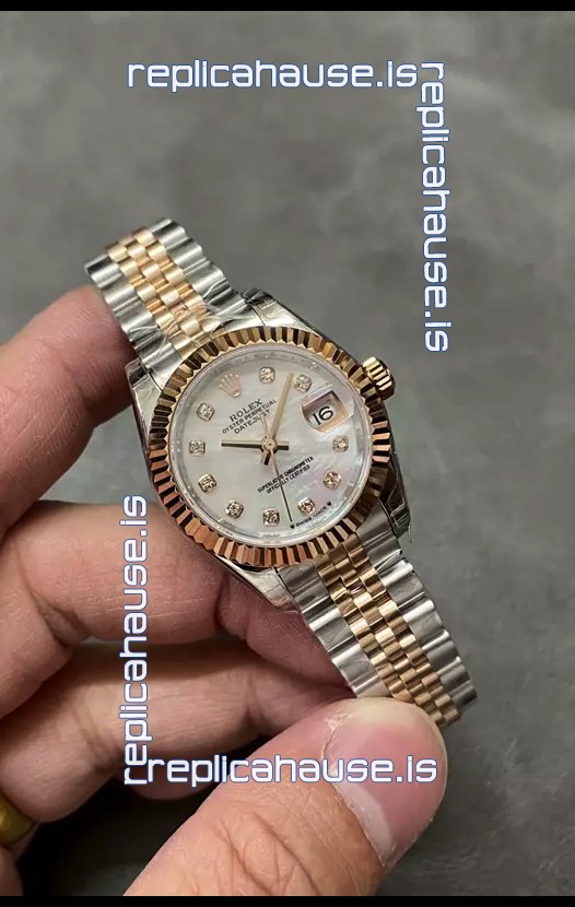 Rolex Datejust Super Clone Mother of Pearl Dial 2 Tone Rose Gold Watch 28MM