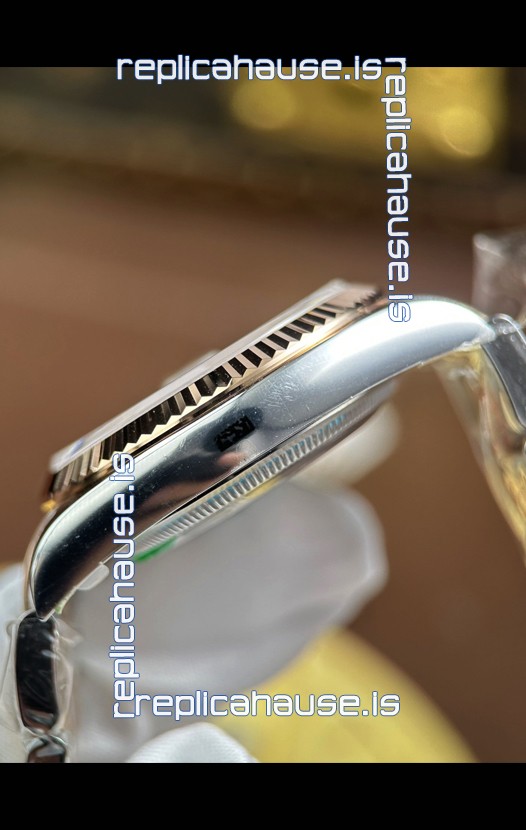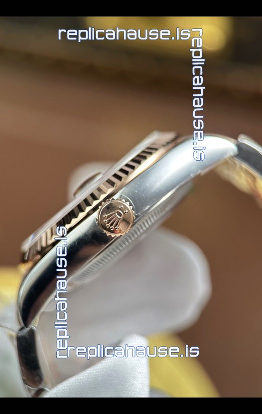 18K Rose Gold Plating Two Tone 904L Stainless Steel Two Tone Polished Case with Bezel as per the original.