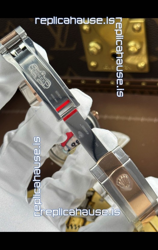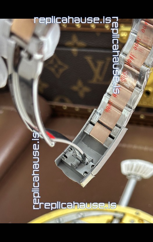 18K Rose Gold Plating Two Tone 904L Stainless Steel Two Tone Strap with New Style Rolesor Deployant Buckle, End links match up Flush with the Case. - A Much Improved Datejust Strap Version