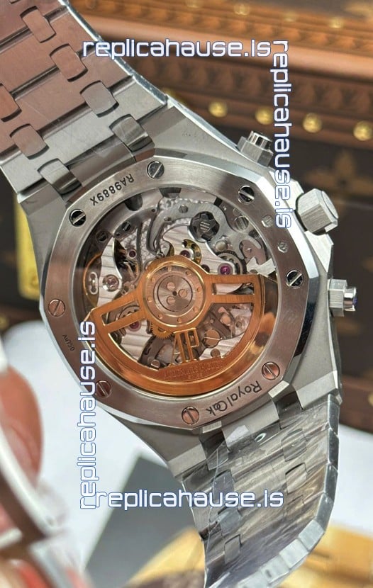 Machinery Layout exactly like Audemars Piguet 4401 Calibre Movement used in Authentic Audemars Piguet Offshore Watches. Built on Genuine Swiss 7753 Movement architecture with Functional stopwatch feature like the authentic with Seconds hand running at the 12 o clock Sub Dial