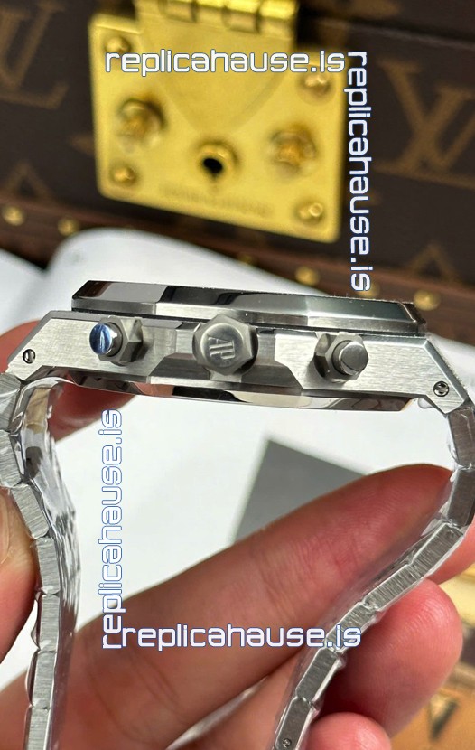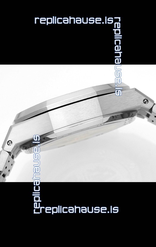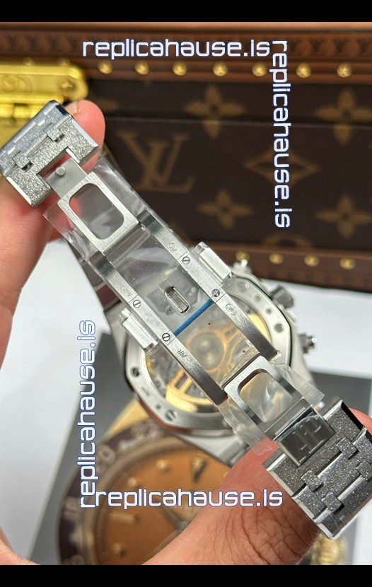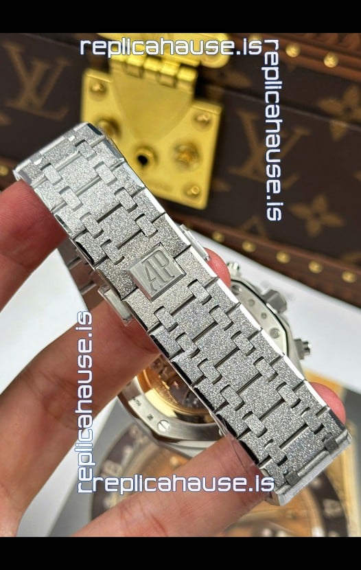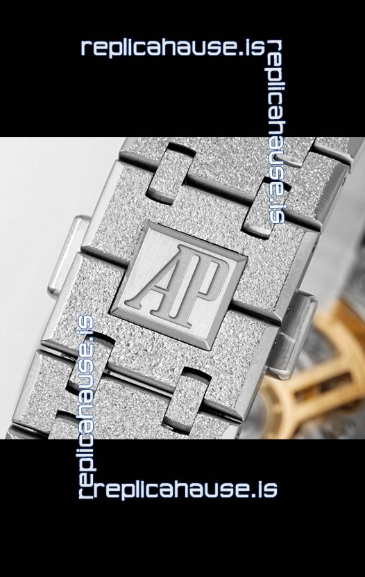 Frosted White Gold Plating on 904L Stainless Steel Strap completed with AP Markings and Engravings as per the originals and AP Folding Clasp